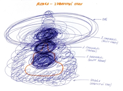 uprostřed postavy Alenky, jako první nejspodnější, se vykreslilveliký chuchvalec. To je bolest